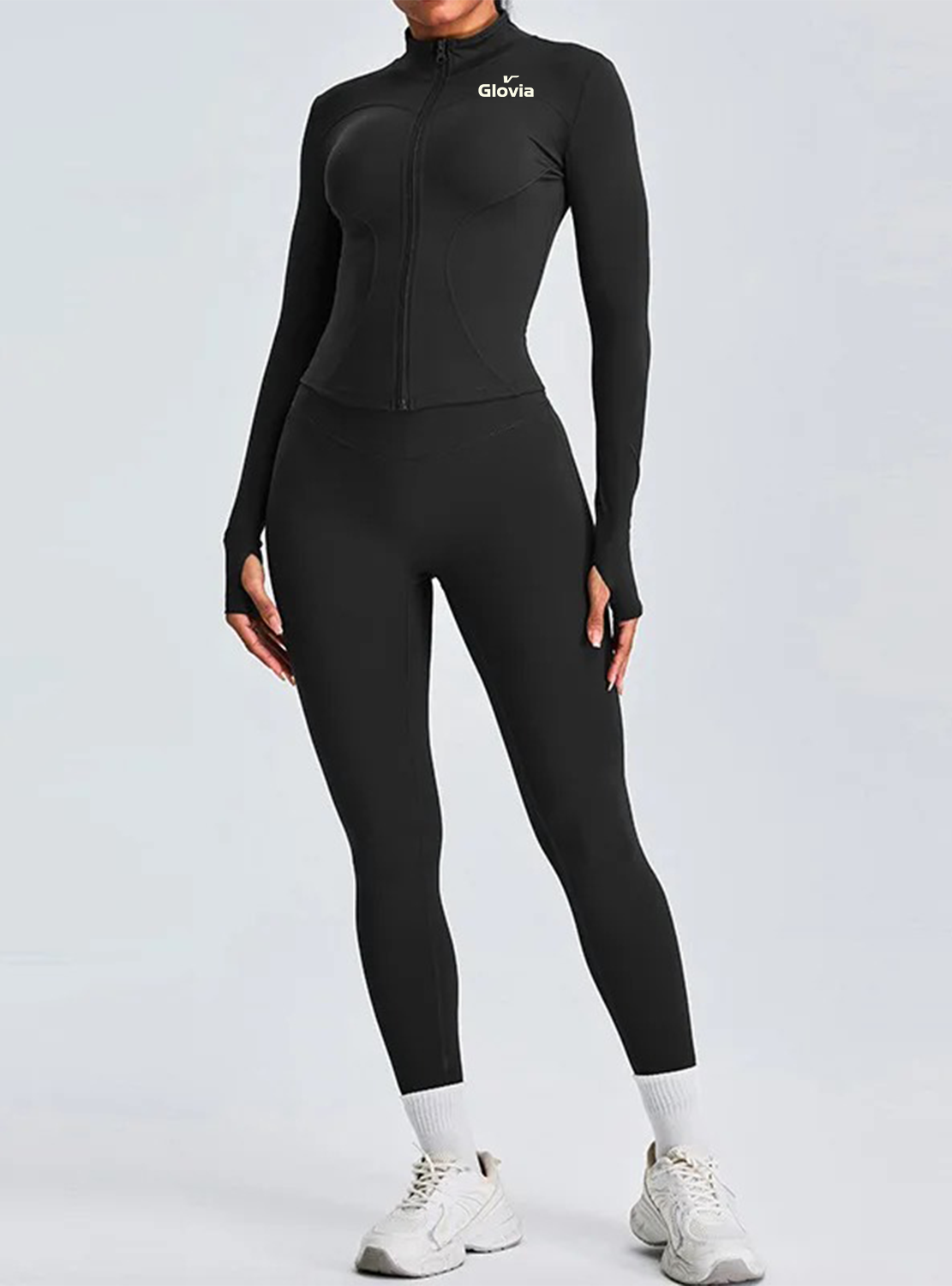 طقم بجاكيت كروب بستايل رياضي أنثوي وبنطلون بخصر عالي